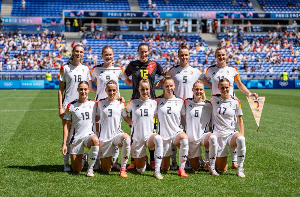 2024年8月9日,在法國里昂進行的巴黎奧運會女子足球銅牌賽中,德國隊1比0戰勝西班牙隊,獲得銅牌。新華社記者 孫非 攝