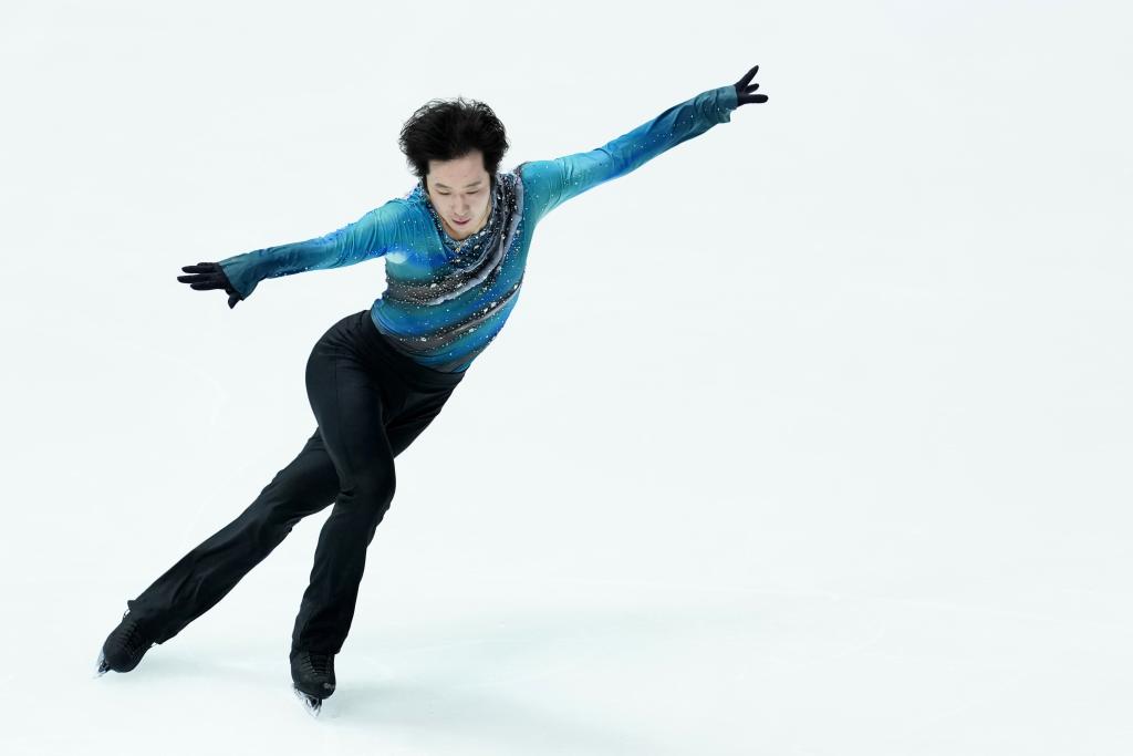 11月7日,中國選手金博洋在男子單人滑短節目比賽中。他以83.92分的成績位列第四名。新華社記者 賈浩成 攝