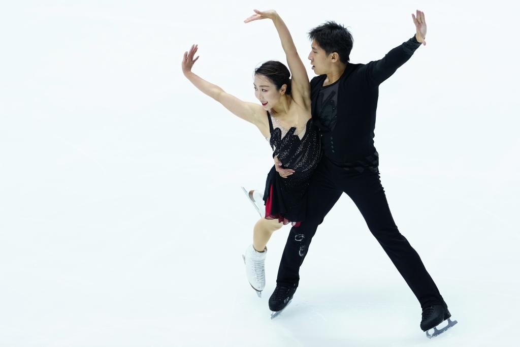 11月7日,中國組合隋文靜(左)/韓聰在雙人滑短節目比賽中。他們以74.63分的成績位列第一名。新華社記者 賈浩成 攝
