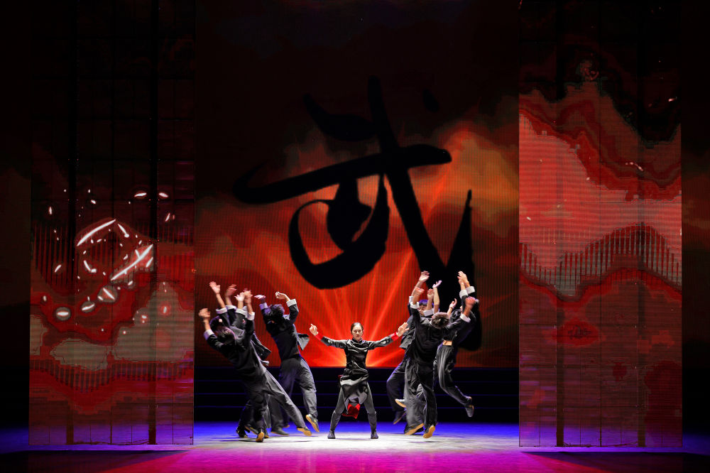 2023年8月6日,來自西華大學的演員在表演《武韻》。當日,由國家體育總局主辦的“中華體育精神頌”成都大運站中國功夫專場展演暨優秀運動員交流活動在大運村藝術中心舉行。新華社記者 沈伯韓 攝