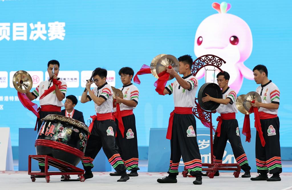 11月11日,粵港澳聯隊在第十五屆全國運動會群眾展演舞龍舞獅南獅自選項目決賽比賽中。最終,粵港澳聯隊獲得一等獎。 新華社記者 王鵬 攝