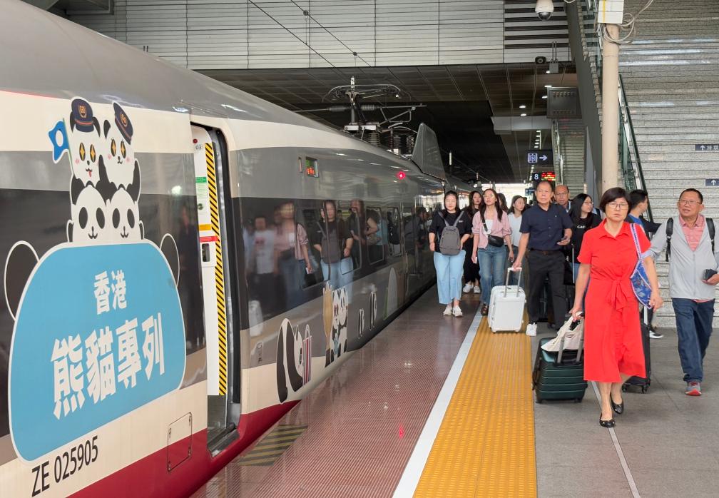 4月27日,往返深港的高鐵列車停靠在深圳北站站&。新華社發