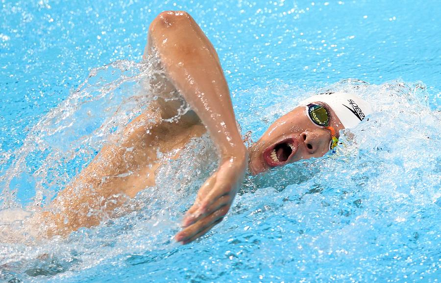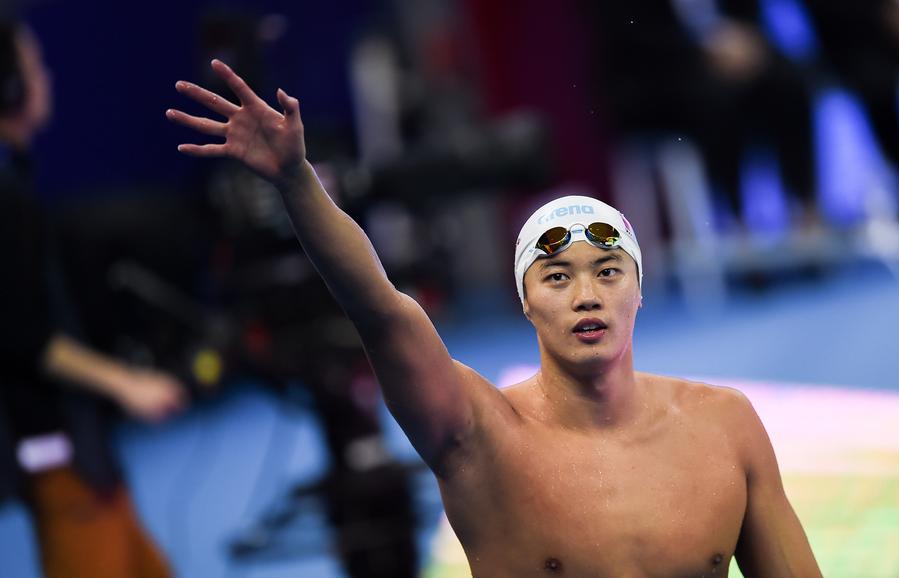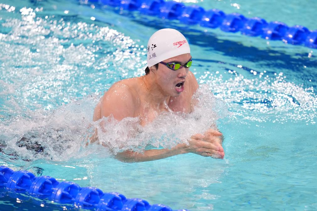 2021年9月19日,浙江隊選手汪順在第十四屆全國運動會游泳項目男子400米個人混合泳決賽中,他以4分12秒76的成績奪得冠軍。新華社記者 雒圓 攝