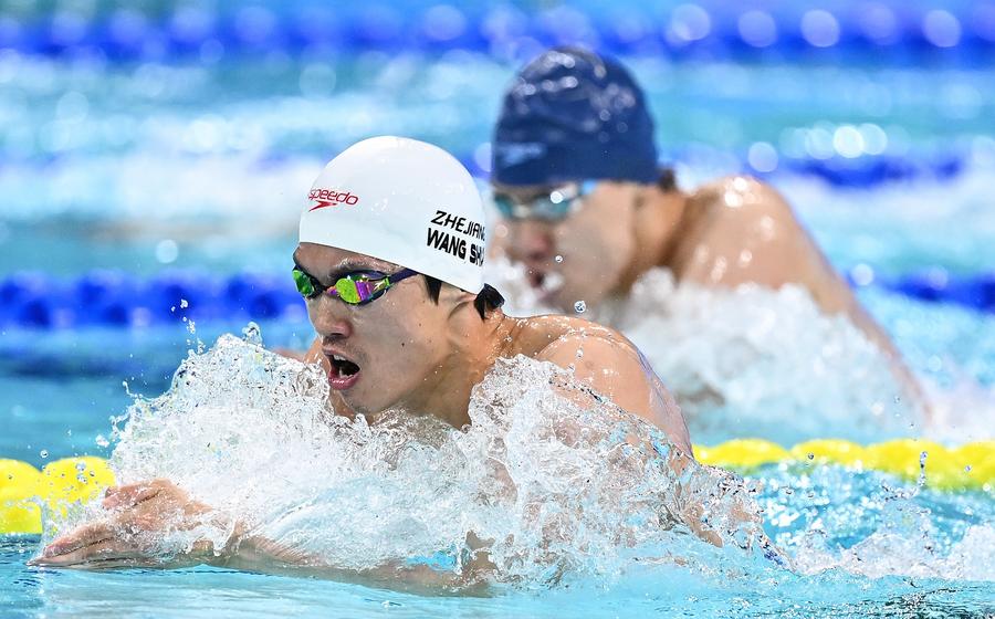 2025年11月17日,汪順在第十五屆全國運動會游泳男子400米個人混合泳決賽中。新華社記者 丁增尼達 攝