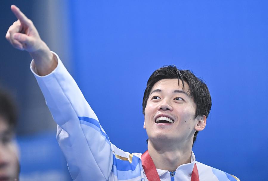 2021年7月30日,汪順在東京奧運會男子200米個人混合泳頒獎儀式上。新華社記者 許暢 攝