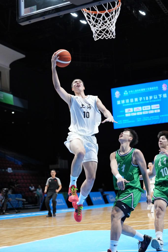 防守他的白隊10號是上海隊的張懿趙傑,出生於2010年的他身高超過2米,已經跳級打過不少U17、U18賽事,今年他隨U16男籃國家隊獲得亞洲盃亞軍併入選賽事最佳陣容。張懿趙傑並非用來專門消耗李悅洲的球隊苦力或者藍領,而是勇於擔當,服從指揮的球隊主力。