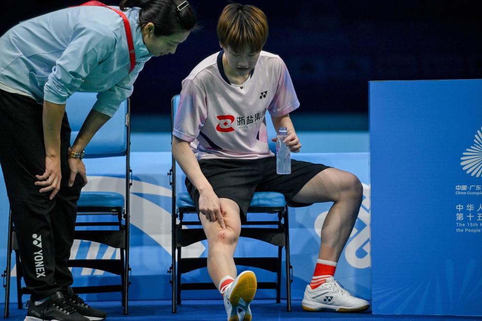 11月20日,陳雨菲在比賽中受傷。新華社記者 連振 攝