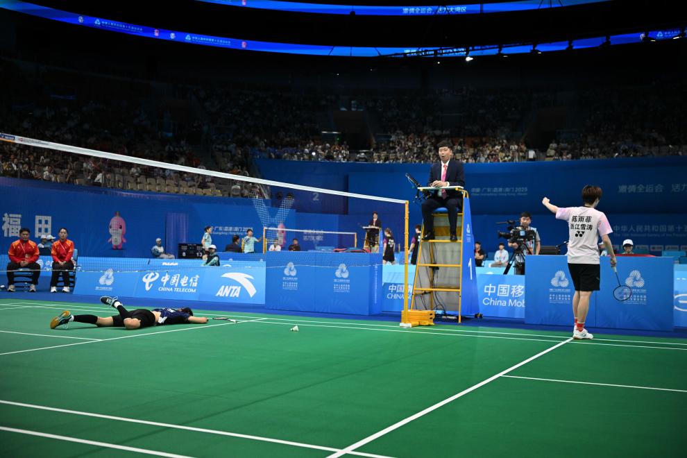新華社深圳11月20日電(記者許仕豪、田光雨、丁文嫻)21:10 、18:21、16:21。鏖戰97分鐘,浙江選手陳雨菲憾負湖北隊王祉怡,未能實現全運會羽毛球女單三連冠。