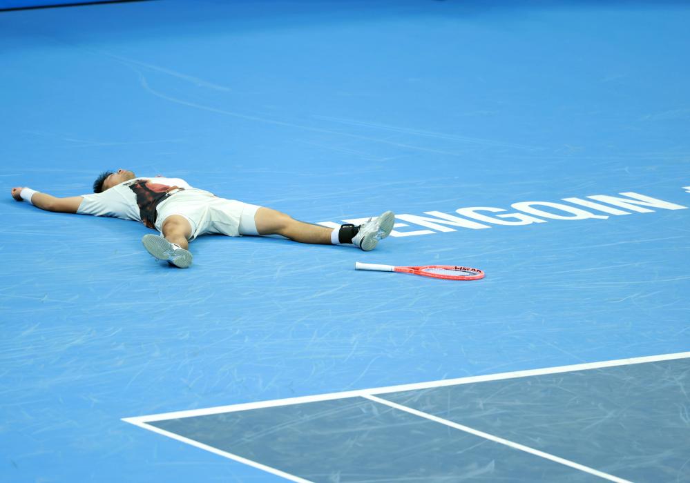 新華社珠海11月20日電(記者樂文婉、楊帆)11月20日,橫琴國際網球中心,在鏖戰2個多小時後,浙江隊名將吳易昺以一記ACE球(發球直接得分且對手未觸球)終結比賽。三戰全運會,他終於站上最高領獎&。