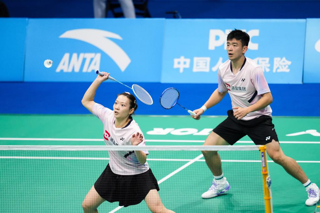 11月20日,浙江隊組合鄭思維/黃雅琼(左)在比賽中。新華社記者 陳思汗 攝