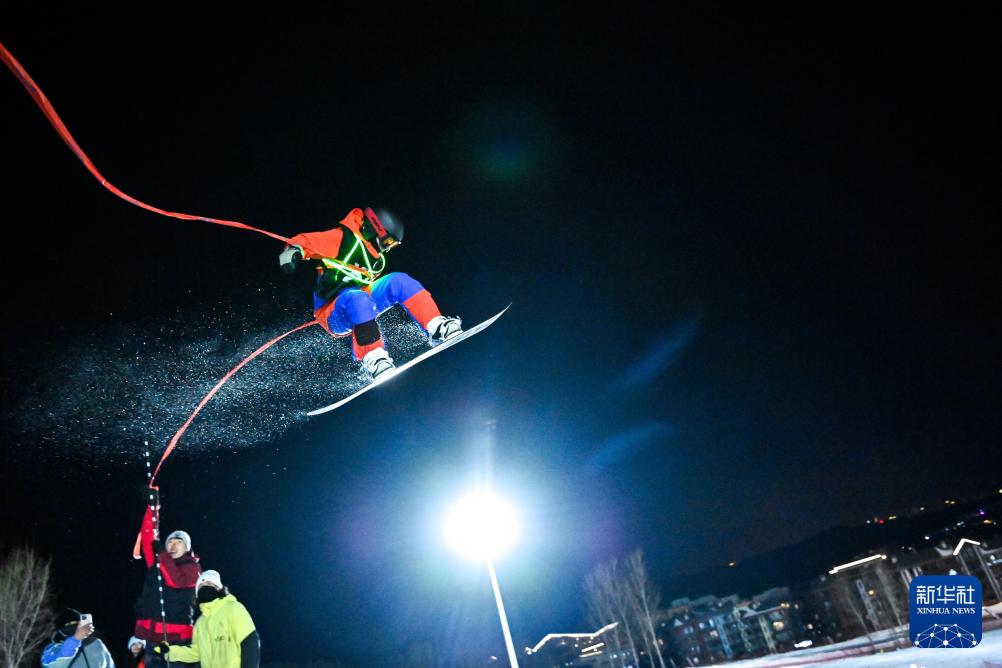 2022年12月10日,滑雪愛好者在位於吉林省吉林市的松花湖度假區V-PARK地形公園挑戰跳&滑雪。新華社記者顏麟蘊攝