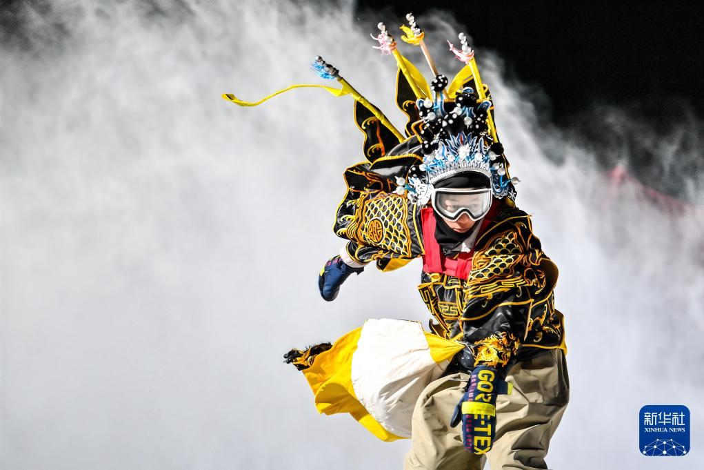 2022年2月15日,中國選手蘇翊鳴在北京2022年冬奧會單板滑雪男子大跳&決賽中。新華社記者李尕攝