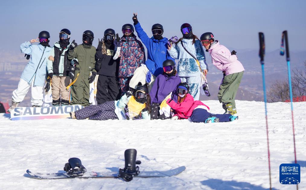 2025年1月27日,幾名滑雪愛好者在新疆絲綢之路山地度假區合影留念。新華社記者王菲攝