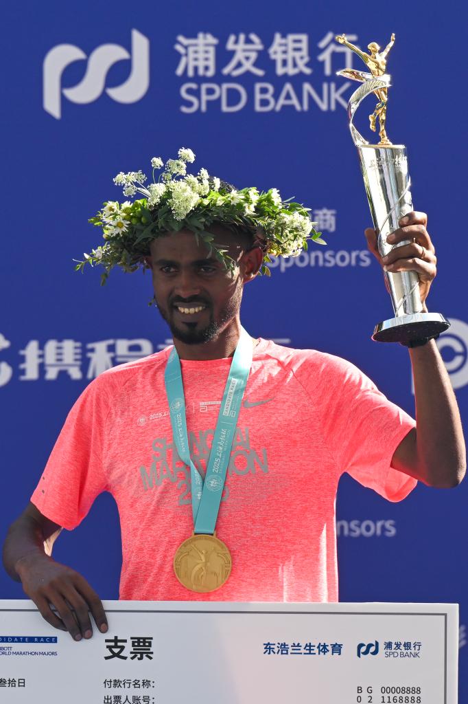 11月30日,男子組冠軍埃塞俄比亞選手門格沙在頒獎儀式上。新華社記者 陳浩明 攝
