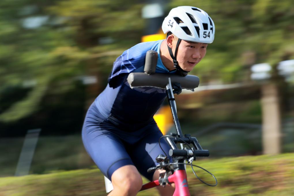 ↑11月27日,新疆隊選手鄧偉在男子PTS2級別自行車比賽中,最終他獲得該級別銅牌。新華社發(劉春林攝)