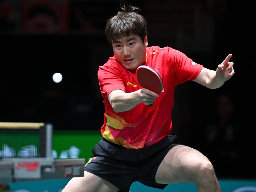 12月4日,中國隊選手梁靖崑在男單比賽中。新華社記者 胥冰潔 攝