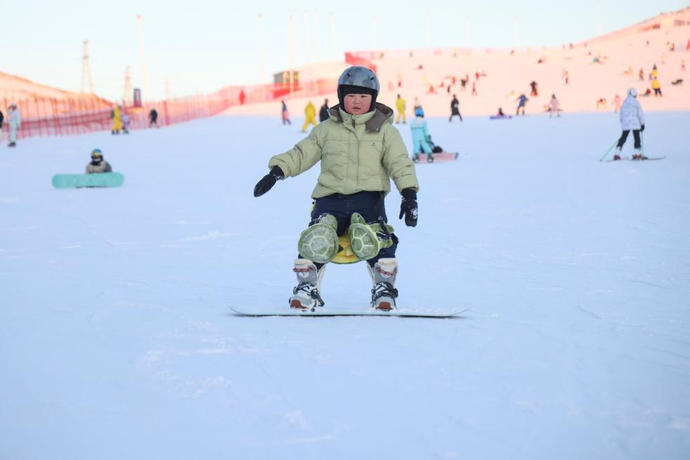 ↑12月1日,一名小學生在滑雪。新華社發(明庭俊傑攝)