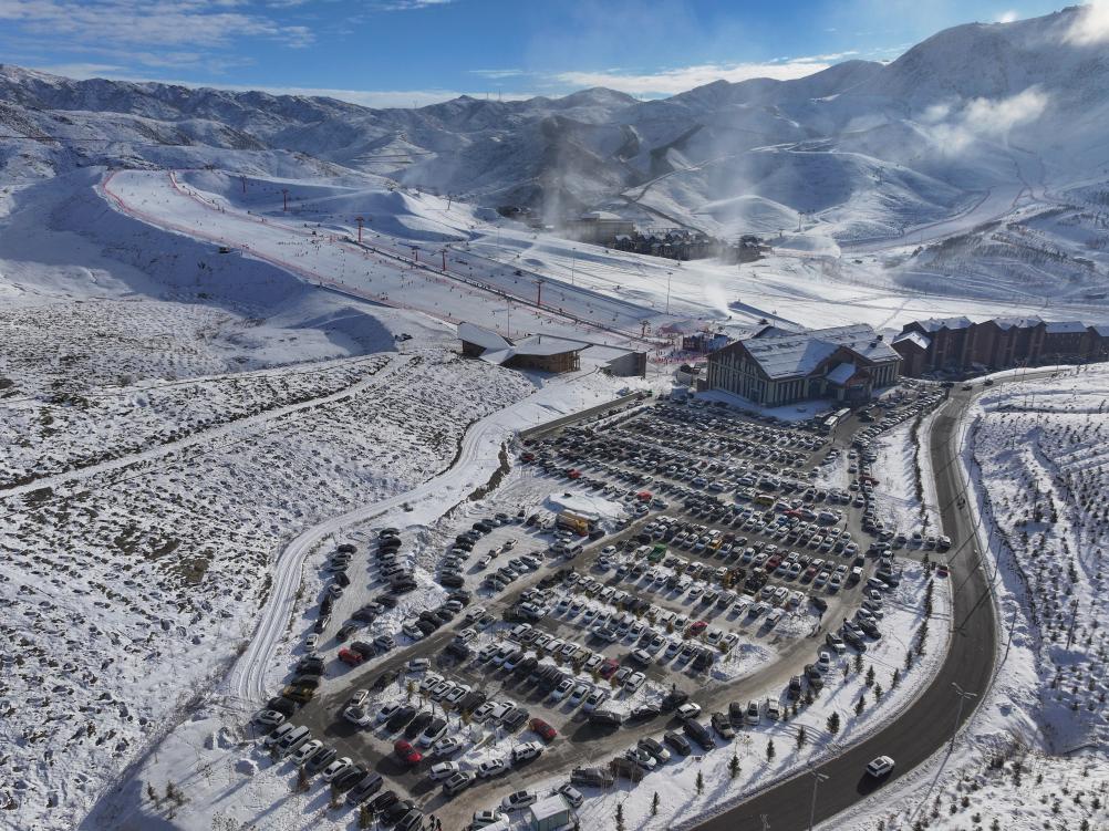 ↑12月1日拍攝的新疆阿勒泰將軍山國際滑雪度假區。新華社發(明庭俊傑攝)