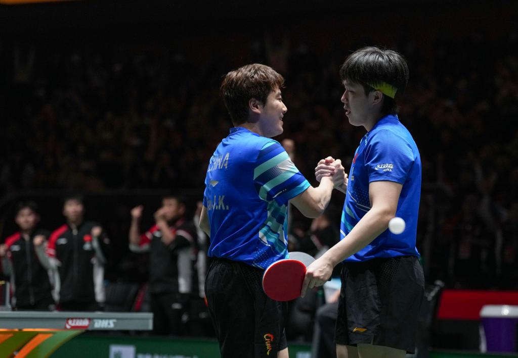 第四場男雙對決,王楚欽再度披掛上陣,搭檔梁靖崑對陣邱黨/杜達。德國組合自身實力過硬,且配對多年十分默契。首局後半段,國乒組合連續出現失誤,以6:11丟掉一局。此後比賽依舊難解難分,但在關鍵球的處理上,王楚欽/梁靖崑更加果斷,最終連扳兩局逆轉,為中國隊鎖定勝局。