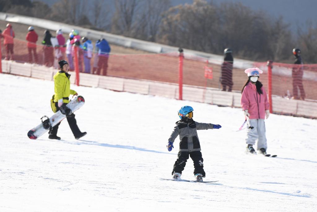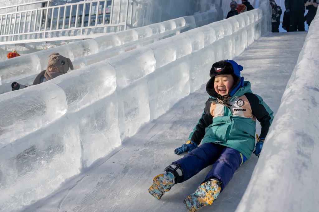 12月21日,孩子們在冰雪那達慕開幕式上滑冰梯。新華社記者 連振 攝