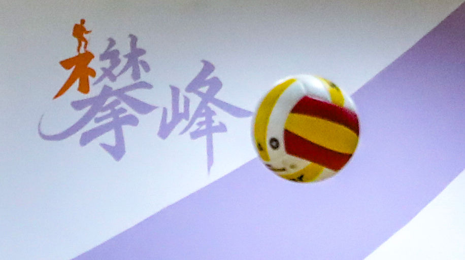 ↑北京景山學校排球訓練館內“攀峰”墻報