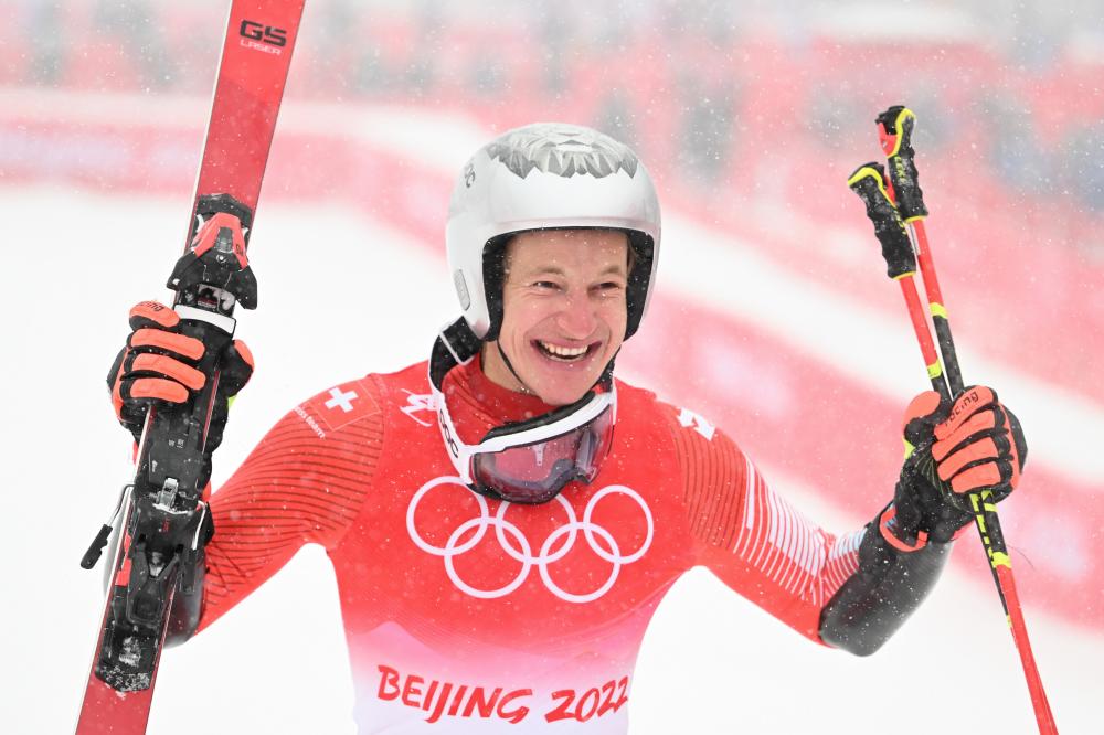 2022年2月13日,北京2022年冬奧會高山滑雪男子大回轉比賽在延慶國家高山滑雪中心舉行,瑞士選手馬爾科·奧德馬特獲得冠軍。新華社記者 連振 攝