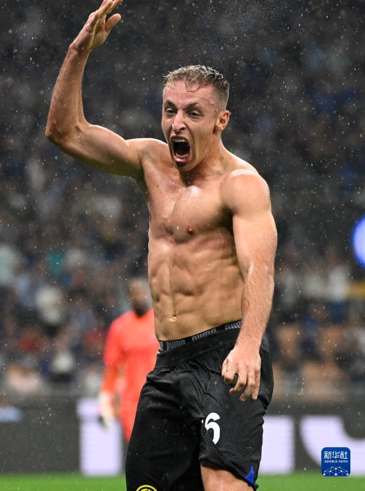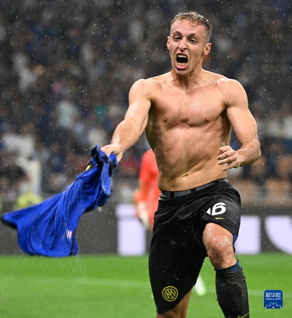 9月16日,国际米兰队球员弗拉泰西进球后庆祝。新华社发(阿尔贝托·林格利亚摄)