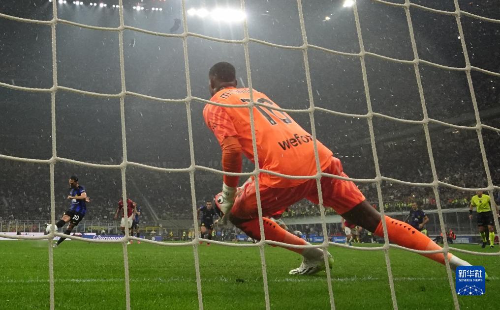 9月16日,国际米兰队球员恰尔汗奥卢主罚点球命中。新华社发(阿尔贝托·林格利亚摄)