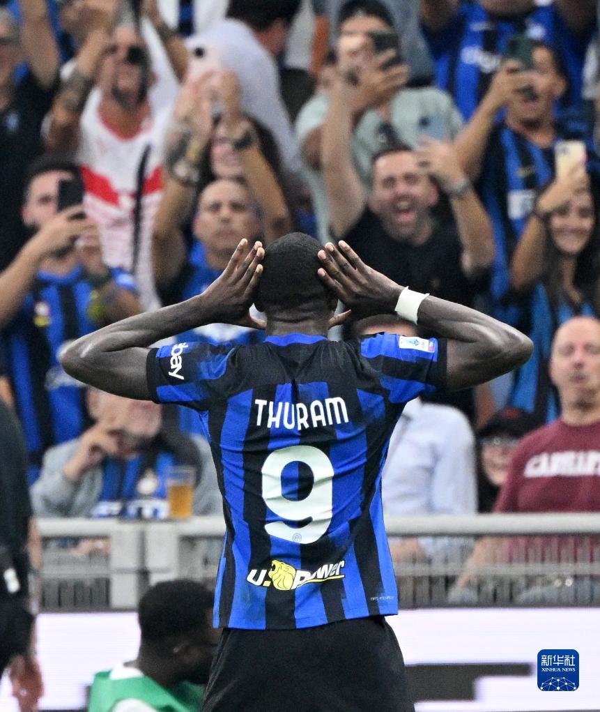 9月16日,国际米兰队球员图拉姆进球后庆祝。新华社发(阿尔贝托·林格利亚摄)