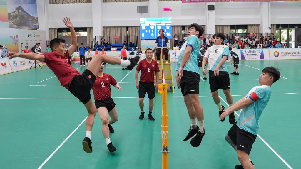 新疆生産建設兵團選手提亞那克驚險取勝,獲得85公斤級一等獎。一場鏖戰後,他與來自海南的選手吉航敬擁抱致意。