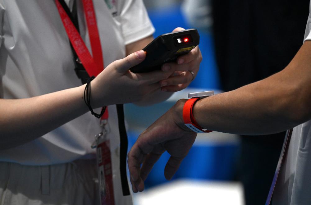 11月8日,全運會歷史上首次舉辦的跨境公路自行車男子個人賽決賽開賽,這是當日拍攝的通關手環。一次次別開生面的科技互動