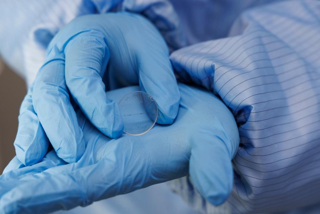 科研人員展示即將進行實驗檢測的月球樣品。新華社記者 金立旺 攝
