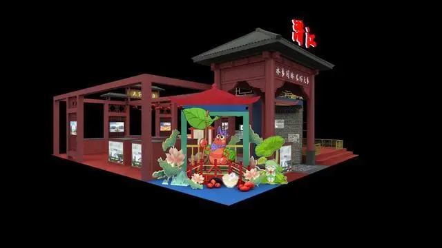 潛江以天下第一台——楚章華&為主題,融入龍蝦文化、曹禺戲劇文化、非遺文化等元素進行展示。展區內鋪設貝殼路、花鼓戲舞&等多處打卡拍照點,推出皮影戲、花鼓戲等特色表演,游客可在現場體驗皮影戲和戲劇頭飾。