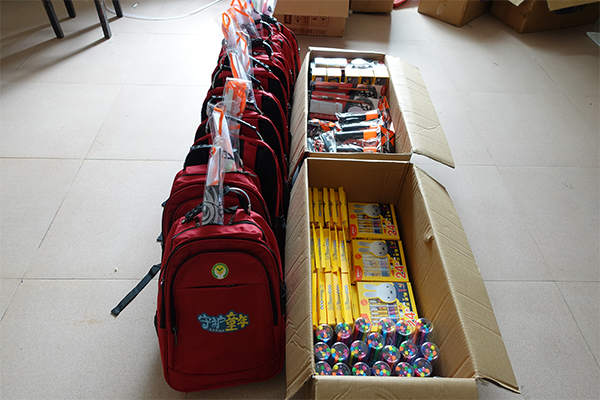 圖為中國兒童少年基金會配備的愛心禮物。新華網吳咏玲 7月26日攝