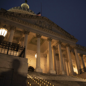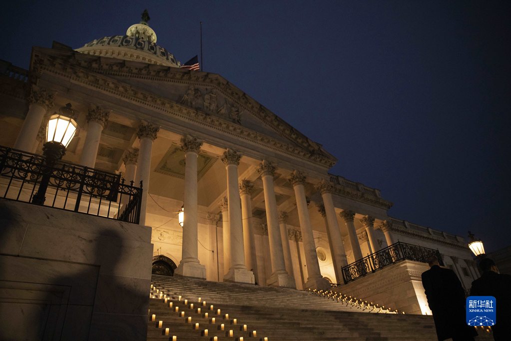 1月6日,美國首都華盛頓國會大廈降半旗、擺放蠟燭,紀念國會山騷亂事件一周年。