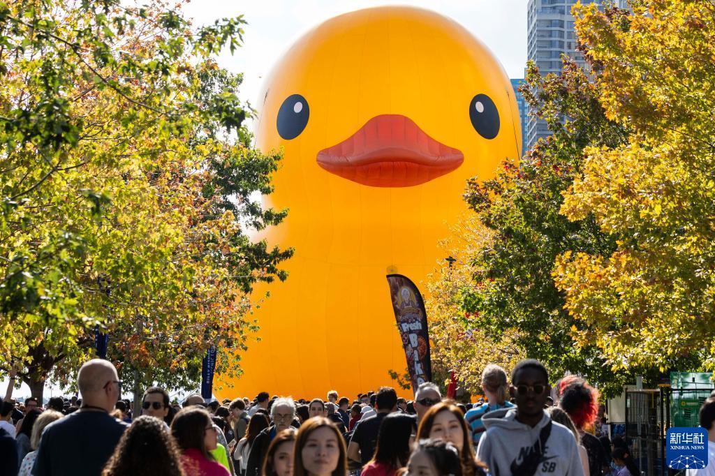當日,一隻6層高、重約13.6噸(30000磅)的橡皮“大黃鴨”亮相多倫多,吸引了眾多游人。這是“大黃鴨”繼2017年後再次來到多倫多,從9月16日至17日向公眾開放。
