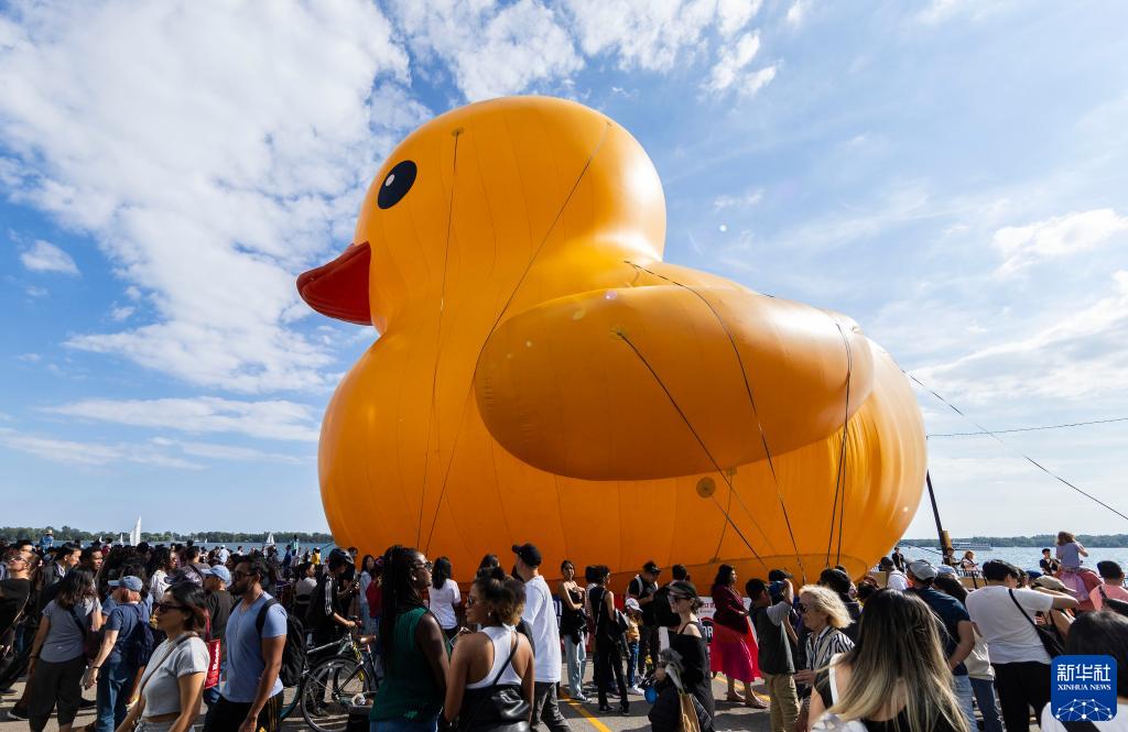 當日,一隻6層高、重約13.6噸(30000磅)的橡皮“大黃鴨”亮相多倫多,吸引了眾多游人。這是“大黃鴨”繼2017年後再次來到多倫多,從9月16日至17日向公眾開放。