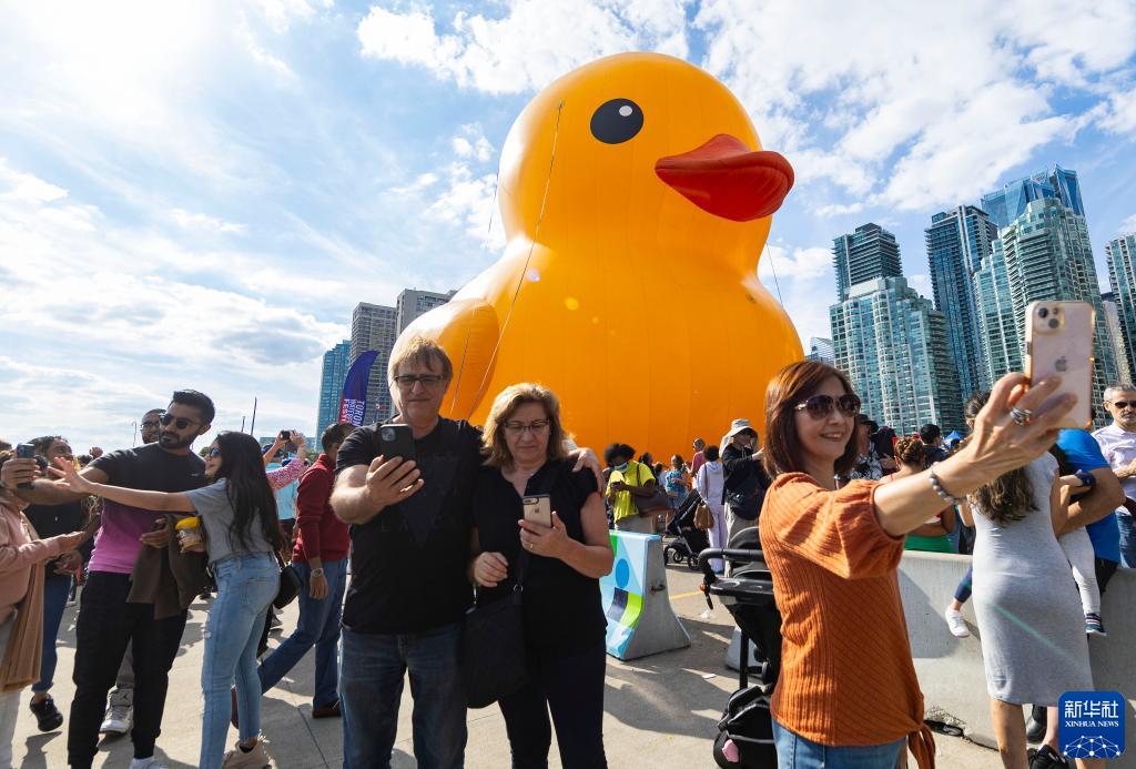 當日,一隻6層高、重約13.6噸(30000磅)的橡皮“大黃鴨”亮相多倫多,吸引了眾多游人。這是“大黃鴨”繼2017年後再次來到多倫多,從9月16日至17日向公眾開放。