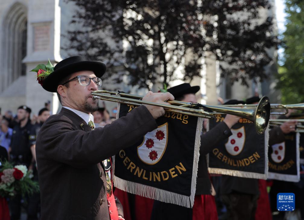 9月16日,樂手參加德國慕尼黑啤酒節開幕大游行。