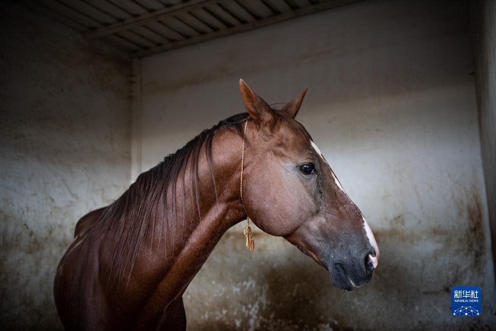 汗血馬學名阿哈爾捷金馬,原産於土庫曼斯坦科佩特山脈和卡拉庫姆沙漠間的阿哈爾綠洲。阿哈爾捷金馬是世界最古老的馬種之一,被土庫曼人稱為“天馬”,是土庫曼斯坦的國家象徵,其形象被繪製在土庫曼斯坦國徽中央。新華社記者 鄔惠我 攝