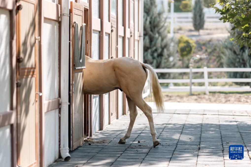 汗血馬學名阿哈爾捷金馬,原産於土庫曼斯坦科佩特山脈和卡拉庫姆沙漠間的阿哈爾綠洲。阿哈爾捷金馬是世界最古老的馬種之一,被土庫曼人稱為“天馬”,是土庫曼斯坦的國家象徵,其形象被繪製在土庫曼斯坦國徽中央。新華社記者 李木子 攝