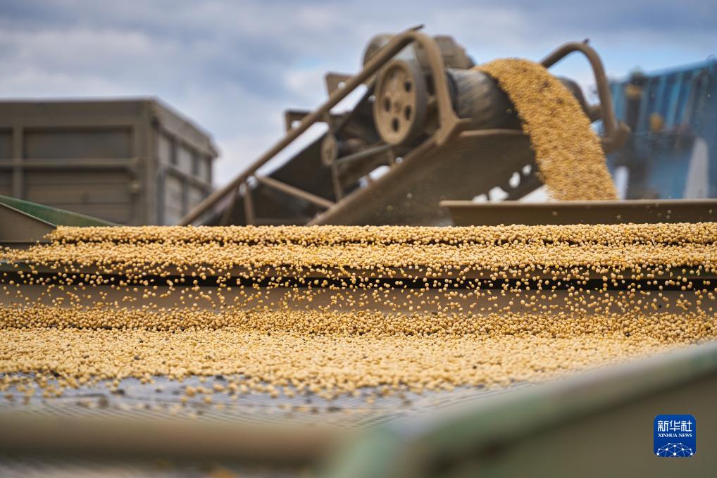 10月22日,俄羅斯遠東城市烏蘇裏斯克一家農場用篩選機處理大豆。