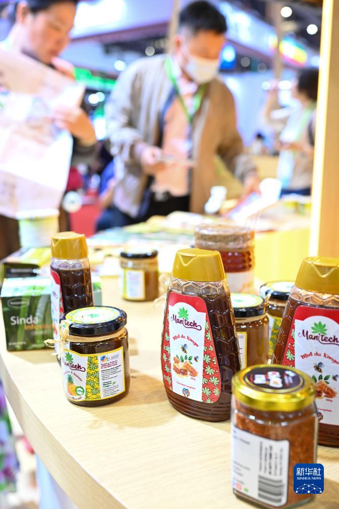 11月8日,在第六屆進博會上,觀眾了解剛果民主共和國蜂蜜産品。