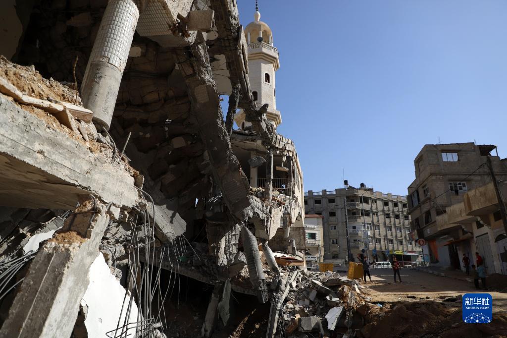這是11月9日在加沙地帶南部城市汗尤尼斯拍攝的被損毀的建築物。
