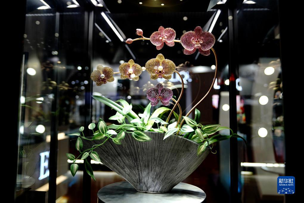 11月9日在第六屆進博會消費品展區拍攝的珠寶藝術品“花好月圓”。
