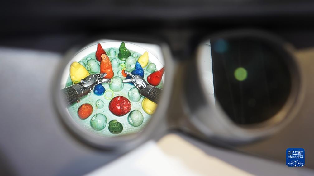 11月7日在第六屆進博會醫療器械及醫藥保健展區復星健康展&拍攝的國産達芬奇手術機器人模擬手術視角。