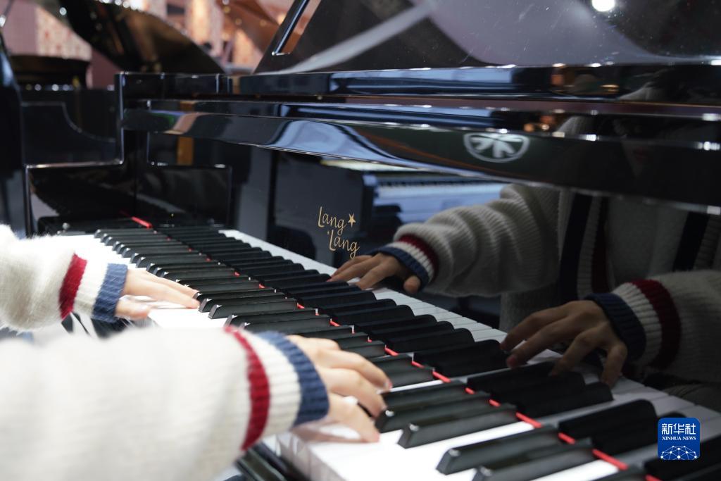 11月9日,在第六屆進博會消費品展區,參觀者在施坦威展&彈奏鋼琴。