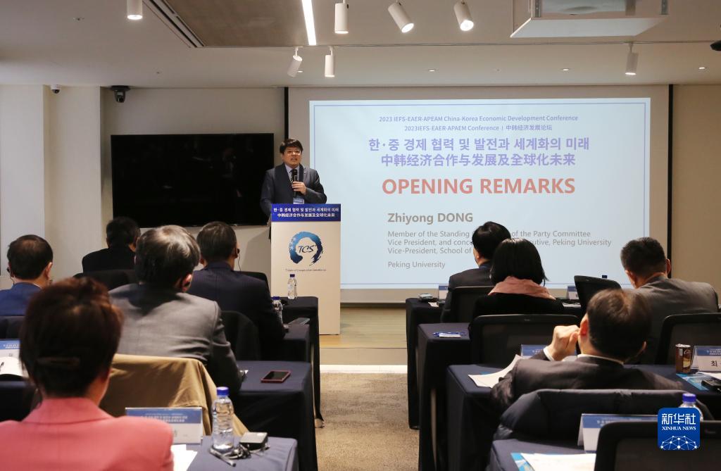 12月21日,北京大學副校長董志勇在韓國首爾舉行的2023年中韓經濟發展論壇開幕式上致辭。新華社記者 姚琪琳 攝