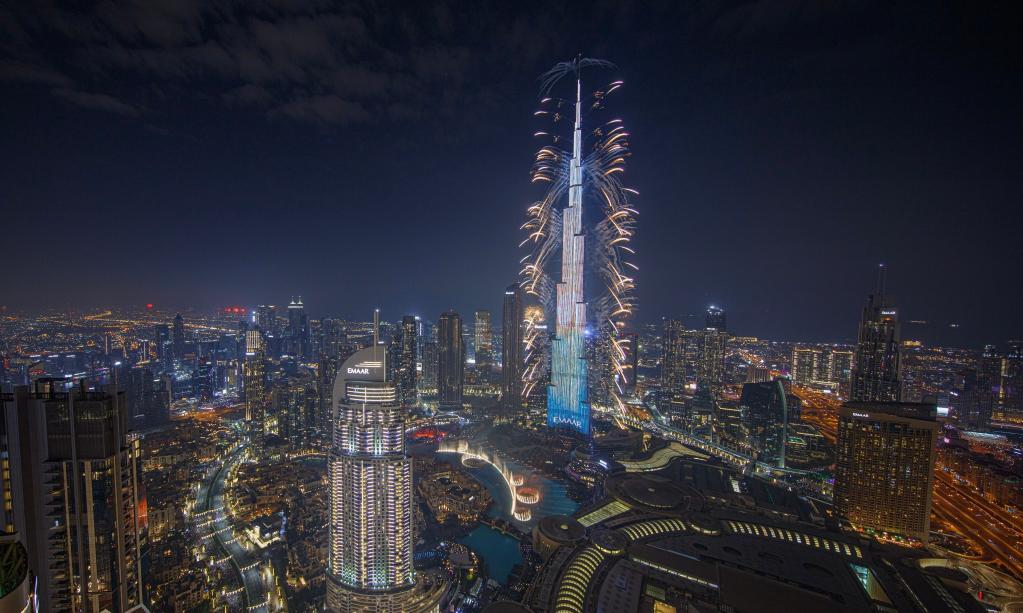 2024年1月1日凌晨,阿聯酋迪拜的哈利法塔舉辦跨年煙火秀。新華社發