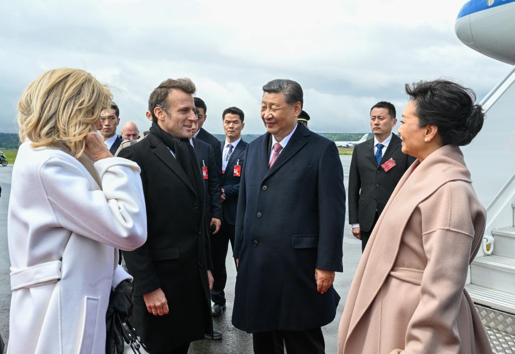 當日,馬克龍總統夫婦不僅親赴塔布機場迎接習近平主席夫婦,還在活動結束後陪同習近平主席夫婦離開圖爾馬萊山口返回塔布機場,並舉行正式歡送儀式。馬克龍總統夫婦一直把習近平主席夫婦送到飛機舷梯處,並擁抱道別。